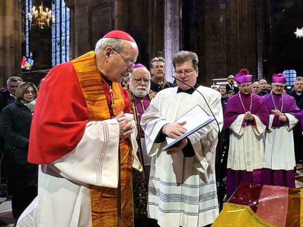 Josef Grünwidl ist neuer Erzbischof von Wien. Im Rahmen eines Festgottesdienstes im Stephansdom legte Kardinal Christoph Schönborn seinem Nachfolger an der Spitze der Erzdiözese Wien die Hände auf und weihte ihn zum Bischof. Nachdem dies auch alle anderen anwesenden 28 katholischen Bischöfe getan hatten, erhielt Grünwidl seine bischöflichen Insignien (Mitra, Ring und Bischofsstab) und wurde zu seinem Bischofssitz (Kathedra) geführt, wo er Platz nahm und damit für alle sichtbar die Leitung der Erzdiözese übernahm. Das war um 15.38 Uhr. Die Mitfeiernden quittierten es mit minutenlangem Applaus.