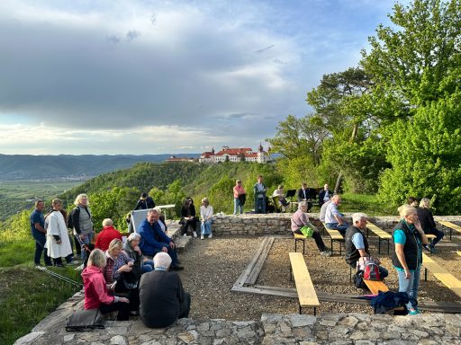 Den eindrucksvollen Rahmen bildet dieser herrliche Ort mit seinem weiten Blick auf den Schneeberg und die Voralpen-Berge, auf Teile der Wachau mit der Ruine Dürnstein, auf das nahe Stift Göttweig und den Waxenberg.